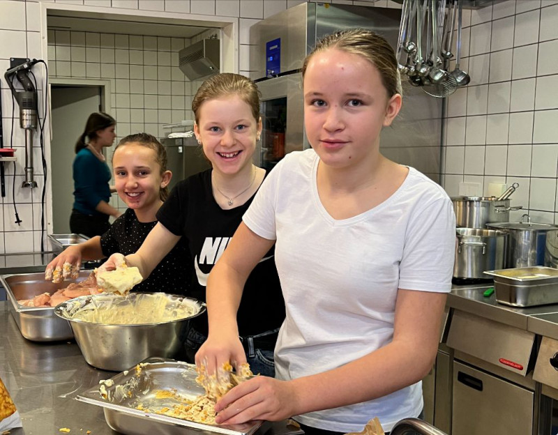 Am Donnerstag, dem 22.01.2026, hat die Klasse 6A eine Mensa-Kochaktion gestaltet. Das Menü durften die Schüler/innen selbst aussuchen: Es gab Hähnchenfleischburger mit Ofenkartoffeln und Salat und für die Vegetarier - Gemüse-Wraps.