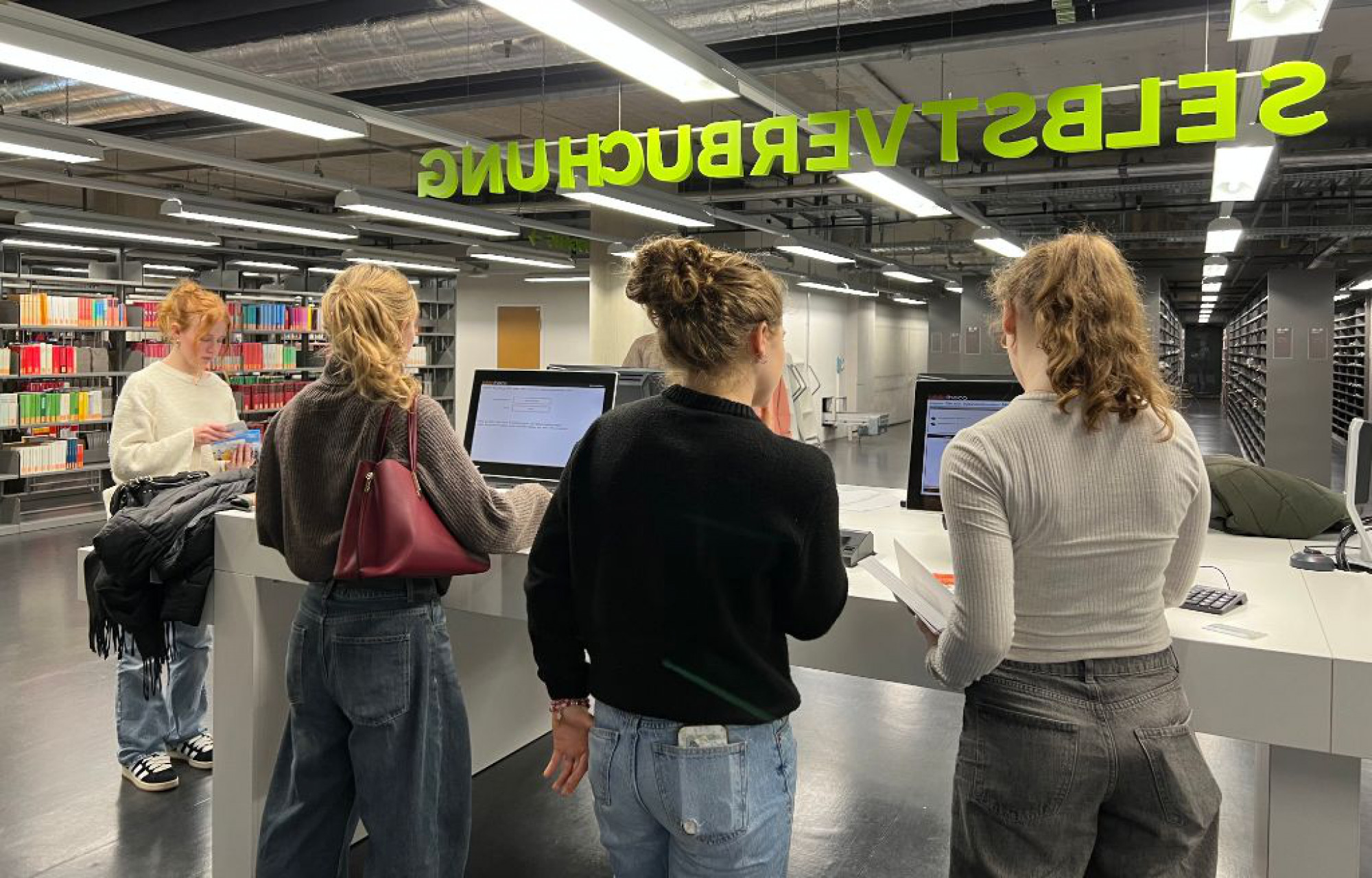 Wie jedes Jahr, bietet der Seminarkurs am Gymnasium Schönau eine gute Chance, sich auf das Schreiben der wissenschaftlichen Arbeit und somit auf das Studium vorzubereiten. Die Anforderungen an Gymnasiast*innen sind dabei sehr hoch. Da kommt der Besuch der Unibibliothek in Freiburg im Dezember einem sehr entgegen, um die wissenschaftliche Recherche zu üben. So auch dieses Jahr hat Zoulfia Schreiber den Ausflug an die Unibibliothek Freiburg genutzt und ihren Seminarkurs mit 16 Teilnehmenden in die wissenschaftliche Arbeit eingeführt. Die Führung hat den Gymnasiast/innen einen Einblick in die wissenschaftliche Welt ermöglicht und sie mit Fülle an analogen und digitalen Medien, die den Nutzer*innen für Recherche zur Verfügung stehen, beeindruckt. Auch haben viele für ihre Themen passende Bücher gefunden und für ihre Seminararbeit ausgeliehen. Als Oberthema wurde von den Schüler/innen dieses Jahr „Gerechtigkeit“ gewählt.