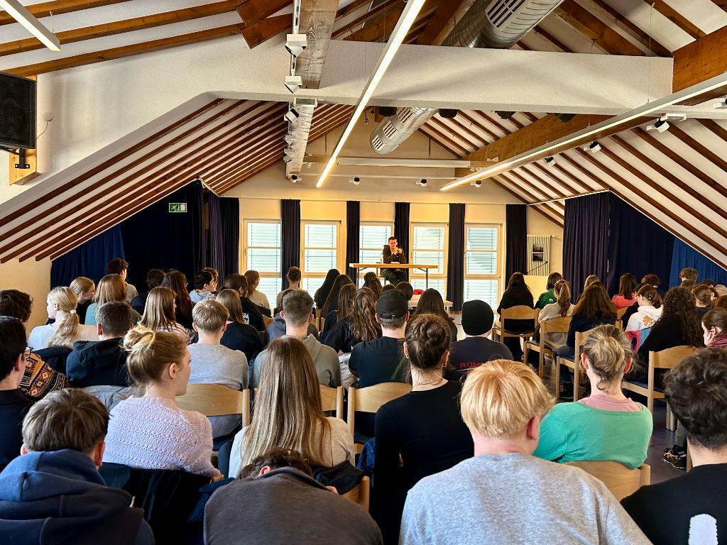 Am Donnerstagvormittag, den 26. Februar 2026, fand im Bürgersaal Schönau eine besondere Autorenlesung für Schülerinnen und Schüler des Gymnasiums Schönau sowie der Gemeinschaftsschule Oberes Wiesental statt. Zu Gast war der junge Aktvist und Buchautor Jakob Springfeld, der sein Werk „Unter Nazis. Jung, ostdeutsch, gegen Rechts“ vorstellte. Organisiert wurde die Veranstaltung vom Helferkreis Oberes Wiesental. Dessen Vertreterin Carolina Bruck-Santos begrüßte die Anwesenden herzlich und hob das vielfältige Engagement des Autors für Demokratie, Klimaschutz und den Kampf gegen Rechtsextremismus hervor. Für seinen Einsatz wurde Springfeld 2024 mit dem Stromrebellenpreis der Elektrizitätswerke Schönau (EWS) ausgezeichnet.