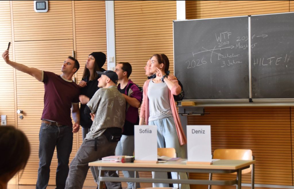 Im Verlauf der Veranstaltung durften die Schülerinnen und Schüler in kleineren Gruppen zusammen die Zukunft eines Avatars gestalten. Dazu verkörperte eine Schauspielerin oder ein Schauspieler von „tempus fugit“ eine Person, die über Themen wie ihre Berufswahl, ihre Zukunft, aber auch partiell Geldsorgen oder familiäre Schwierigkeiten nachdachte. Immer wieder war im Gestalten der näheren Zukunft des Avatars die Gruppe wichtig, um die anstehenden Lebensentscheidungen zu diskutieren und zu reflektieren. Dabei konnten sich die Gruppen kreativ und direkt mit den anstehenden Fragen der Zukunftsplanung auseinandersetzen und mitnehmen, dass es nicht „den einen richtigen Weg“ gibt, um seine Zukunft zu gestalten. Das Projekt wurde von der Schülerschaft besonders aufgrund der partizipativen Elemente positiv aufgenommen.