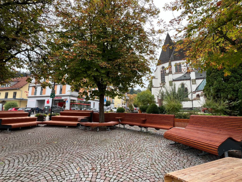 Er wurde nämlich nach einem langwierigen Prozess durch einige Sitzmöglichkeiten, hergestellt von dem lokalen Unternehmen „Holzwurm Srock“, und 2 Schranken eines lokalen Unternehmens ersetzt.
